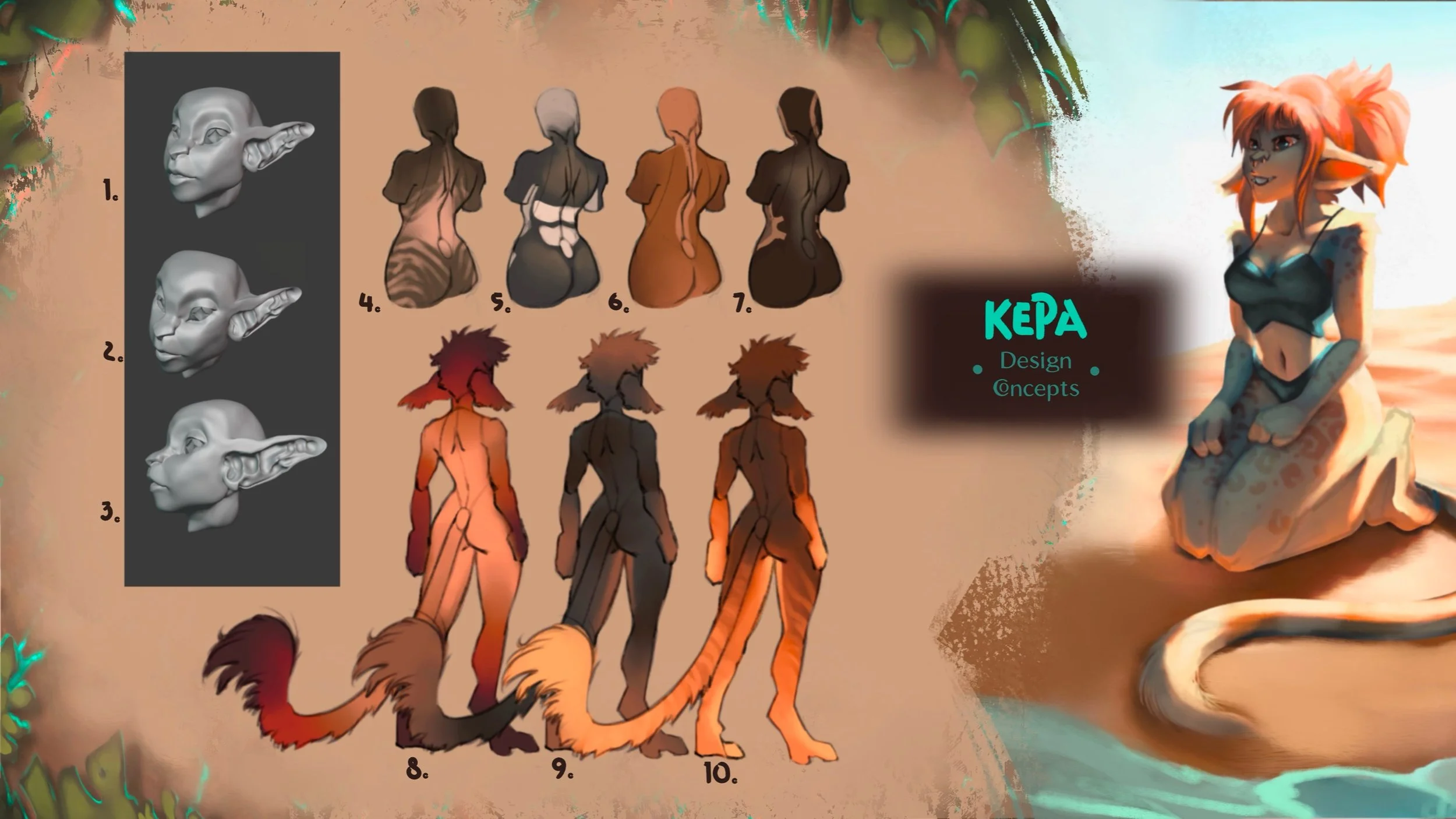 Concept art for a fantasy scene titled "Lost Lizard 3D Platformer" showing various architectural sketches and final colorful renderings of a whimsical 3D platformer game environment, including structures, bridges, and natural elements.
